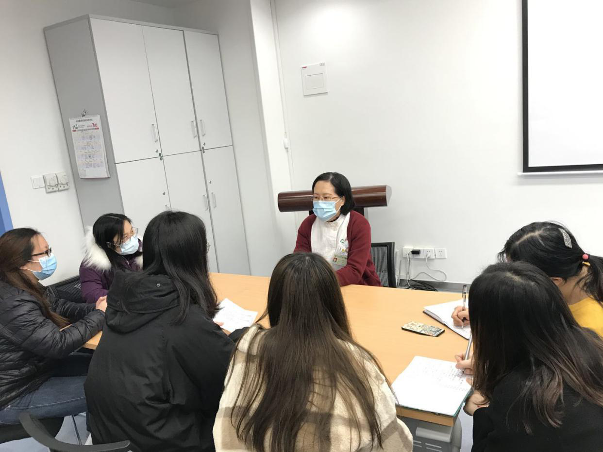 最后,何细飞护士长与调研组同学们进行合影留念,并寄语所有护理学子:把身体素质搞上去,把专业知识搞上去,把语言基础搞上去,紧跟国际学术动态前沿,用最精湛的操作技术、最扎实的专业知识筑起白衣天使之墙,守卫全人类的生命和健康