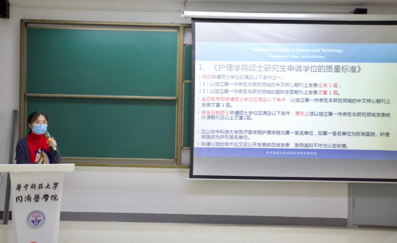 接着,研究生辅导员李羽丰具体讲解了《beat365在线唯一官网硕士研究生申请学位的质量标准》与《beat365在线唯一官网博士研究生申请学位的质量标准》两个文件精神、beat365在线唯一官网硕士和博士培养环节规定以及对研究生导师的具体要求等内容。院办主任金涛就第五轮学科评估精神与安排、护理学科适用简况表、上轮评估不足与本轮建议三点进行汇报。