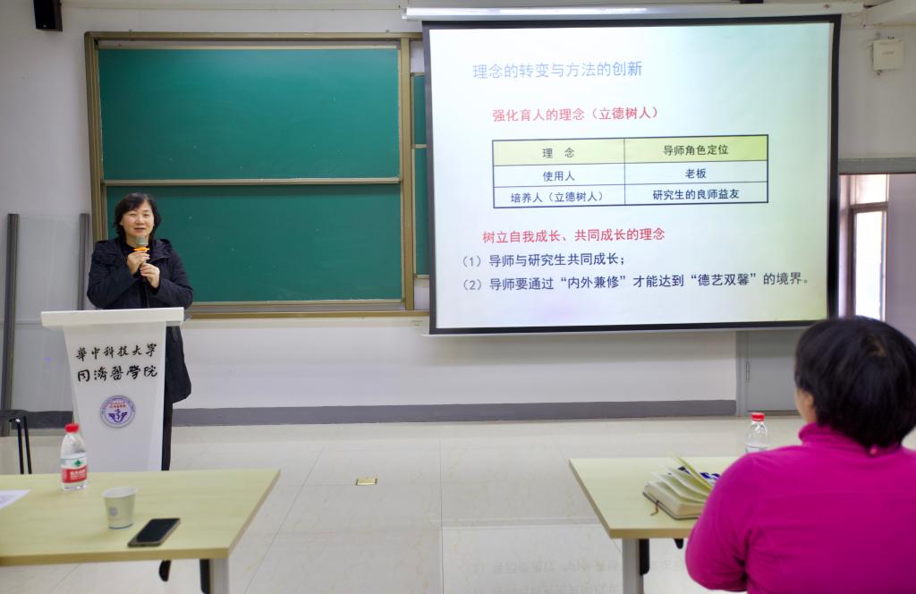 校研究生院院长马彦琳以“不忘初心,牢记使命—如何做一个负责任的导师”为题,从教育的初心与使命、我国研究生教育的历史方位、我校研究生教育发展态势与问题、导师职责及履责应注意的问题等四个方面讲述研究生教育的重要性和导师立德树人的必要性。她指出,研究生工作总的指导思想应该是千方百计提高培养质量,特别是提高培养研究生的创新能力。马彦琳希望全体导师坚持教书与育人相一致,坚持言传和身教相统一,因材施教,做研究生成长成才的指导和引路人。