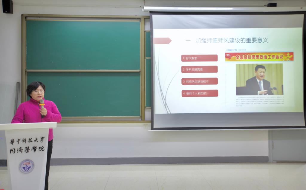 随后,徐晖书记围绕加强师德师风建设的重要意义、师德师风全程管理、关键节点与重点领域等三个环节,强调国家和学校对教师的高度关注与规范,将“以德修身,恪守师德;以德修己,弘扬师德;以德育人,桃李芬芳”的理念传递给全体导师。