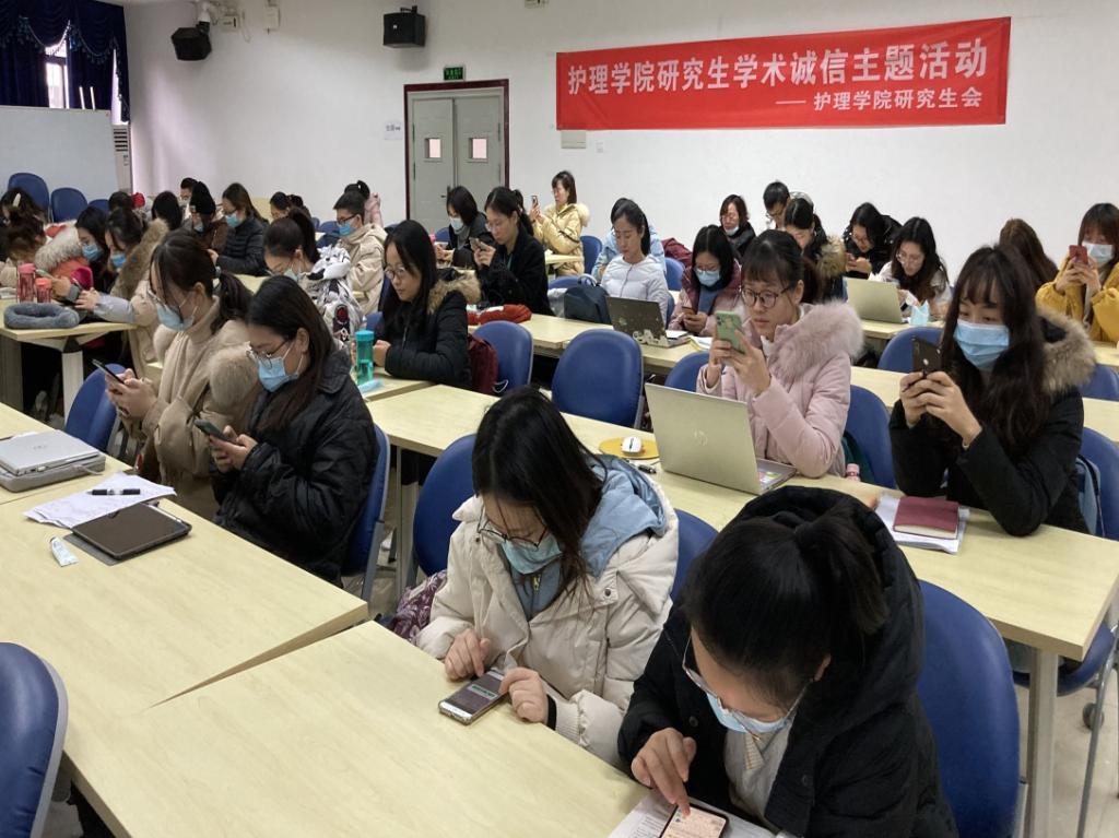 12月16日上午,beat365在线唯一官网于老公卫楼十一大教室举办了“不忘初心,诚信前行”主题学术诚信活动,并邀请beat365在线唯一官网优秀毕业研究生吴梅利洋为大家带来专题分享,全体全日制研究生如期参加。