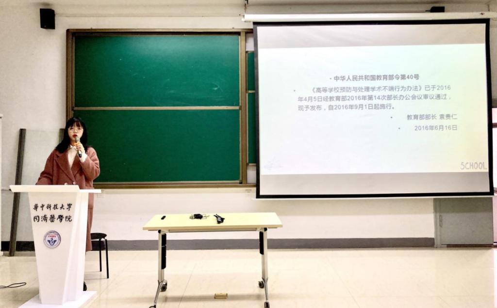 随后,吴梅利洋师姐围绕“漫谈学术诚信”这一主题进行了精彩的分享,她由《左传襄公二十四年》中的“太上有立德,其次有立功,其次有立言”一语引出“诚信”二字,通过与同学们互动的形式介绍了目前存在的部分学术不端的行为,对其存在的原因也做了一定的解释,同时纠正了同学们对于学术不端存在的误解,例举了部分医学界由于学术不端行为造成严重后果的事件。