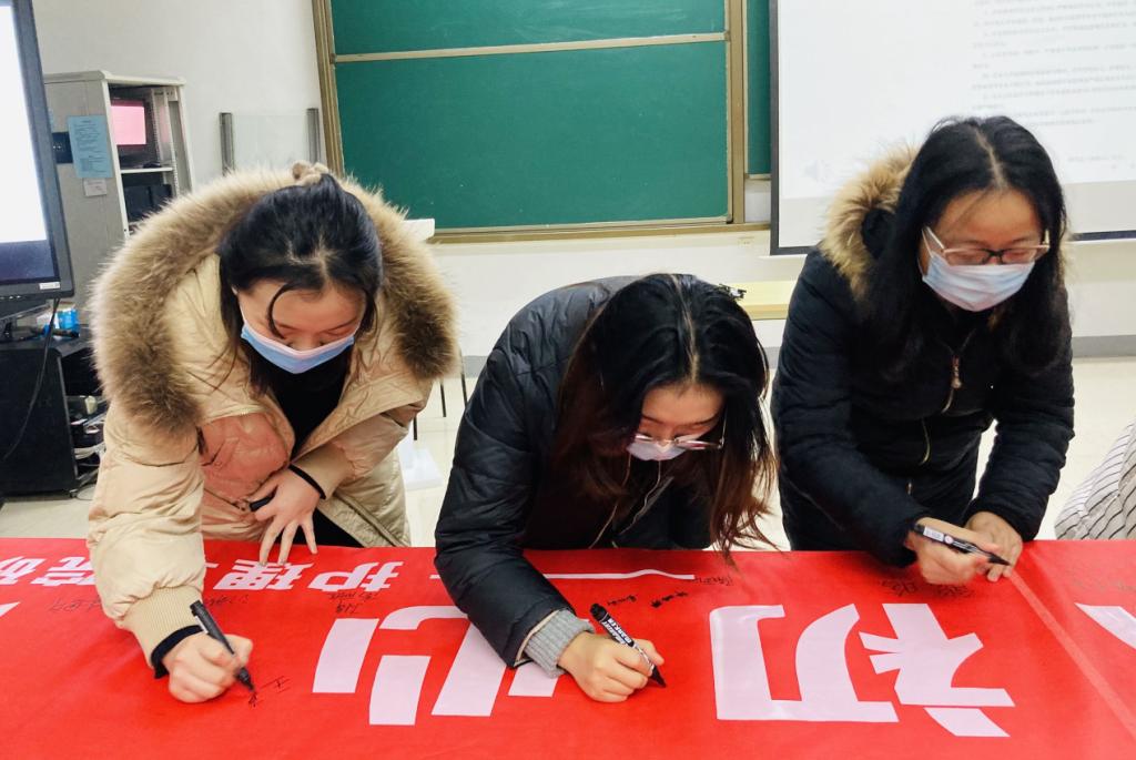 宣誓完毕后,全体同学依次在学术诚信的红色横幅上签下了自己的姓名,以示自己的学术诚信之心。