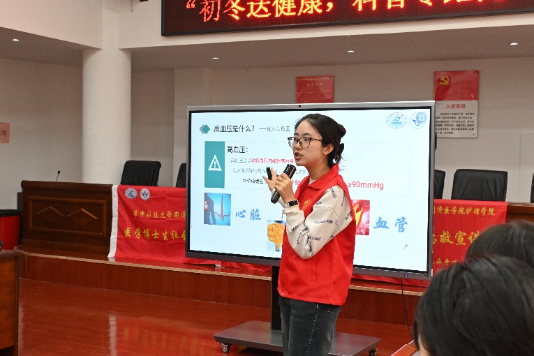 义诊结束后,进入健康知识宣讲环节,医博团成员围绕“守护生命,救在身边”、“老年心理健康”、“常见慢病自我管理”、“日常膳食营养指南”四大主题开展科普讲座。本次科普讲座包括常用急救知识情景演示、身心健康知识宣讲以及健康知识科普竞答三个环节。吸引了50余位社区老年居民和社区工作人员前来参与学习。