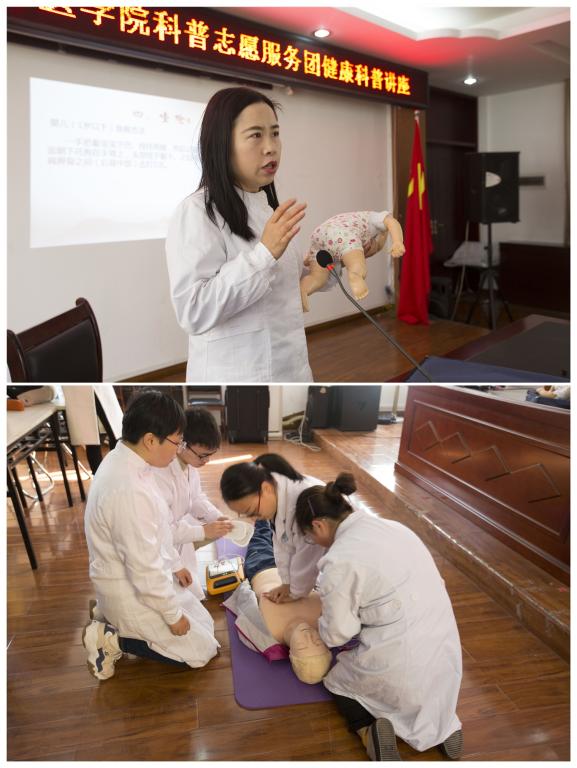 beat365在线唯一官网副教授胡翠环以《急救知识 生命的防护墙》为主题,对社区居民常见意外伤害事件如烧烫伤、食物中毒、噎呛、脑卒中等的处理进行了详细讲解,并配合研究生现场演示,着重讲授了心肺复苏手法及除颤仪的使用方法,增强居民在意外伤害发生时的应对和处理能力。生动地讲解和现场提问互动引起了社区居民的极大兴趣。