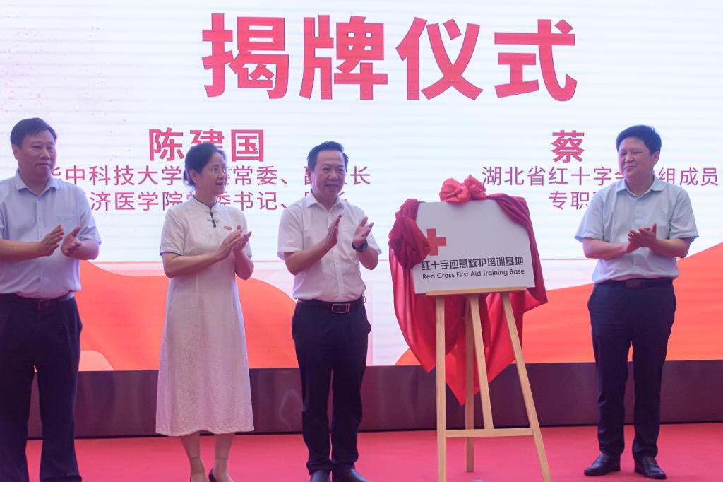 陈建国副校长代表beat365在线唯一官网与湖北省红十字会签署《湖北省红十字会与beat365在线唯一官网应急救护培训合作协议》,并与湖北省红十字会党组成员、专职副会长蔡卿共同为“红十字应急救护培训基地”揭牌。