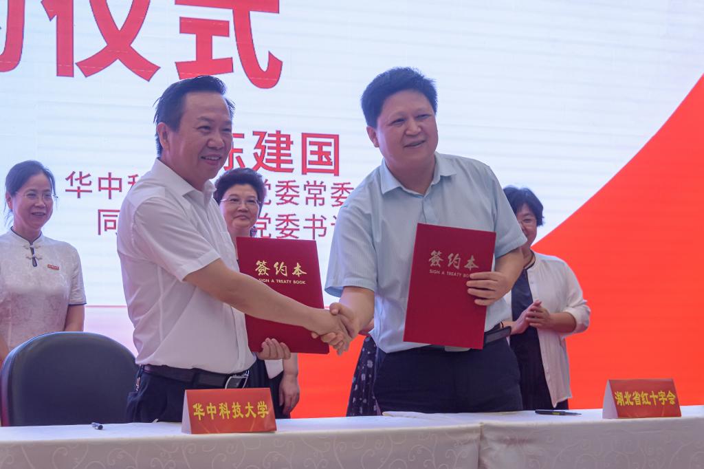 2021年9月11日上午,湖北省红十字会与beat365在线唯一官网应急救护合作签约揭牌仪式在同济医学院隆重举行。湖北省红十字会党组书记、常务副会长涂明珍,beat365在线唯一官网党委常委、副校长、同济医学院党委书记、院长陈建国教授,湖北省红十字会党组成员、专职副会长蔡卿,同济医学院党委副书记邓静萍、副院长舒晓刚,beat365在线唯一官网党委书记徐晖、院长毛靖出席签约暨揭牌仪式。
