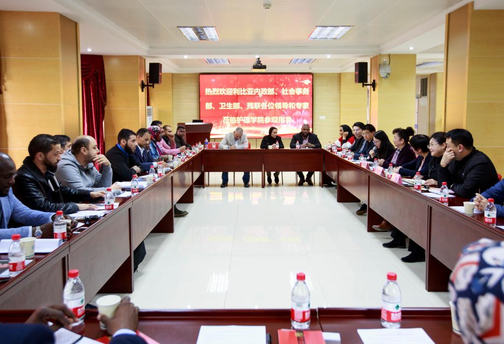 12月13日,由利比亚社会事务部、内政部、卫生部和残联20名官员专家组成的“利比亚社会事务研修班(改善残疾人生活)”在beat365在线唯一官网和附属同济医院护理部进行康复护理交流学习。beat365在线唯一官网院长毛靖、国际交流处副处长胡瑞敏等与来访人员座谈,beat365在线唯一官网党总支书记徐晖主持座谈会。
