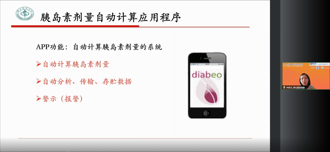 湖北医药学院beat365在线唯一官网朱树贞副教授以“5+1”社区糖尿病分阶段管理模式为切入点,分享了其课题组基于移动医疗设计的胰岛素剂量自动计算应用程序。该应用能够实时个性化地调整胰岛素剂量,以帮助糖尿病患者实现自我管理支持,同时避免因剂量注射的偏差产生的风险。