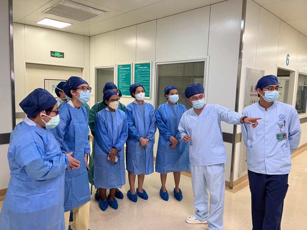 师生代表团还实地参观了麻醉科、神经外科ICU、心脏大血管外科、心血管外科ICU与重症医学科,双方就术后病人麻醉复苏过程中的护理要点、神经外科病人护理难点等进行深入探讨。