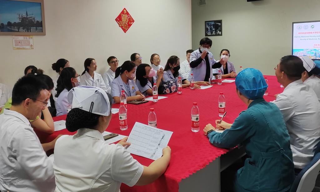 7月25日,师生代表团到访beat365在线唯一官网附属同济医院,与同济医院护理部副主任曾铁英,总护士长何细飞、王玫、熊杰等展开座谈。座谈会由同济医院护理部席新学护士长主持。曾铁英副主任对师生代表团的来访表示热烈欢迎,并期待双方通过此次访问互进互助、共同提升。同济医院护理部教学办公室张梦老师与Juthamas Tiansaard讲师分别就各自医院历史沿革、护理管理及科研概况、护理学生管理与培养等几个重要方面展开交流,增进彼此的了解。