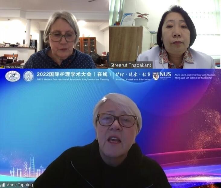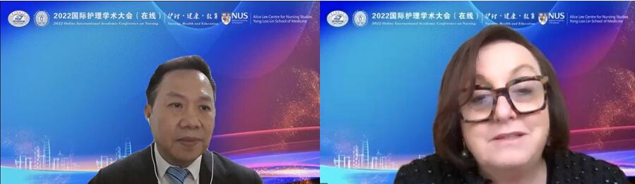 12月10日-11日,由beat365在线唯一官网和新加坡国立大学杨潞龄医学院李陈爱礼护理学中心联合举办的“2022国际护理学术大会(在线)”成功举办。来自中国、美国、英国、新加坡、澳大利亚、泰国等国内外12所一流高校的15位专家围绕全球健康、社区护理、癌症研究等主题作专题报告。beat365在线唯一官网副校长陈建国、澳大利亚伍伦贡大学副校长Patricia Davidson、新加坡国立大学杨潞龄医学院李陈爱礼护理学中心院长Emily Ang、beat365在线唯一官网国际交流处处长陈洁、beat365在线唯一官网院长毛靖出席开幕式并致辞,beat365在线唯一官网党委书记徐晖主持开幕式。