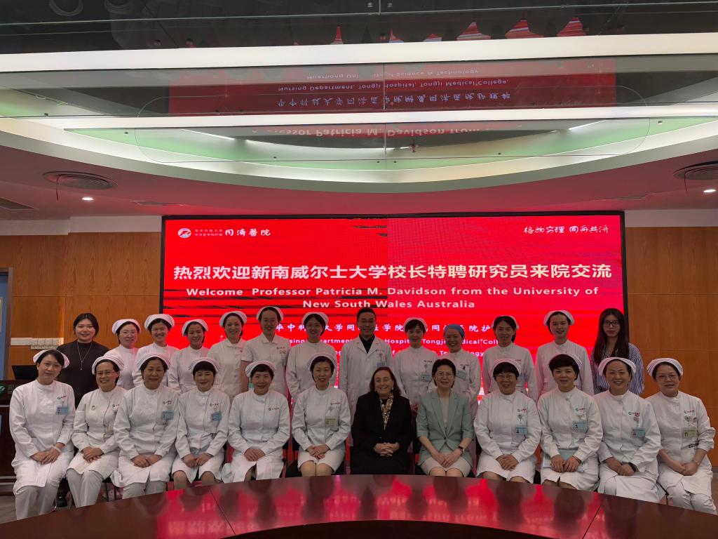 在同济医院,Davidson教授参观了国家标准化心脏康复中心,双方围绕数字健康照护在慢病管理中的实践挑战、重症心脏康复非循证实践优化等议题展开交流。Davidson教授对同济医院在疫情期间展现的护理专业水平给予高度赞扬,并就全球护理行业面临的老龄化挑战、公共卫生事件应对等议题提出展望。同济医院护理部主任王颖、总护长及科护士长代表等出席欢迎仪式。