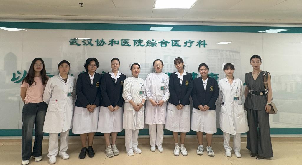 7月7日至8日上午,学生代表团走进beat365在线唯一官网附属同济医院参观交流,先后参观了神经外科、甲乳外科心内科、内分泌科、呼吸重症监护室等,围绕电生理适宜技术应用、淋巴水肿综合消肿治疗、呼吸重症规范化管理等内容展开观摩学习。