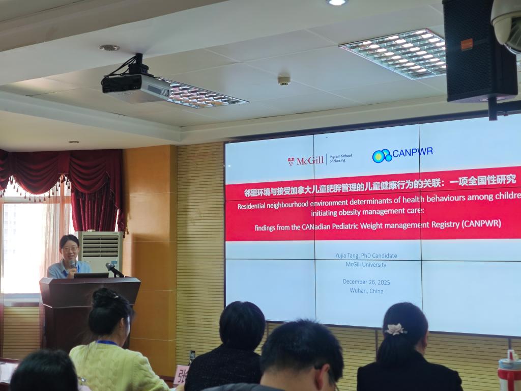 唐雨佳博士聚焦儿童肥胖这一公共卫生热点,以“邻里环境与接受加拿大儿童肥胖管理的儿童健康行为的关联”为题,分享了其通过系统综述梳理研究缺口、基于加拿大全国性队列研究开展的实证探索,她深入剖析了邻里环境中的步行友好程度、绿地覆盖面积等因素与儿童身体活动频次、睡眠时长等健康行为的关联,指出其中存在显著的性别与年龄差异,为制定更具针对性的儿童肥胖干预策略提供了重要实证依据。