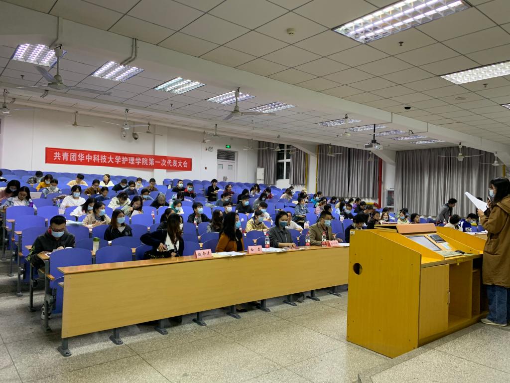 七点整,beat365在线唯一官网第一次团代会在嘹亮的国歌声中正式开始。校团委副书记韩仁锋首先致辞。他对大会的召开表示热烈祝贺,同时充分肯定了beat365在线唯一官网团委近几年来在思想引领、组织建设、创新实践、校园文化建设等方面所取得的成绩,鼓励大家锤炼高尚品格,争做积极奉献社会的青年楷模,争做社会主义核心价值观的坚定信仰者、积极传播者、模范践行者,充分展示护理学子的青春和力量,并预祝大会取得圆满成功。随后,beat365在线唯一官网党委书记徐晖致辞。她首先向辛苦筹备团代会工作的老师和学生骨干们表示亲切的慰问,并希望院团委下一步工作要紧扣时代脉搏,认真学习宣传贯彻习近平总书记系列重要讲话精神,进一步增强团员青年的思想政治素质;高举理想信念的旗帜,把握广大青年的脉搏,引导团员青年深刻理解中国梦和青年梦的密切关系;积极投身学校“双一流”建设,充分发挥好党的助手和后备军的作用;带领全院青年团员在校园文化建设中发挥作用,为学院的发展建设谱写出新的篇章。