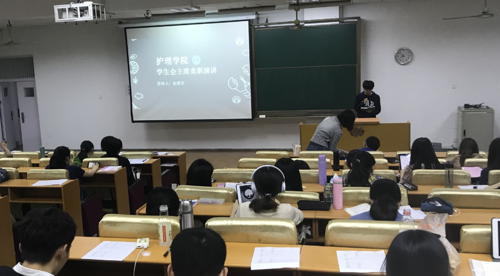 随后,进行竞职演讲,各学生组织部门的候选人依次上台发言,介绍自己的情况,凸显自己的优势,或总结往年的工作经验,或展望未来的工作规划,以期得到同学们的信任与支持。