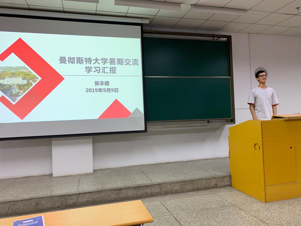 研究生张丰健学长,陈也学姐,16英的胡涤非同学共同就英国曼彻斯特交流项目向大家进行了汇报工作。从曼彻斯特大学简介、英国医疗卫生保健体系、英国护理学教育体系、特殊领域的护理模式、学术感悟、个人心得等模块对此次交流进行了全方位,多角度的交流汇报,让在座学生们能更好的了解此项出国交流项目。