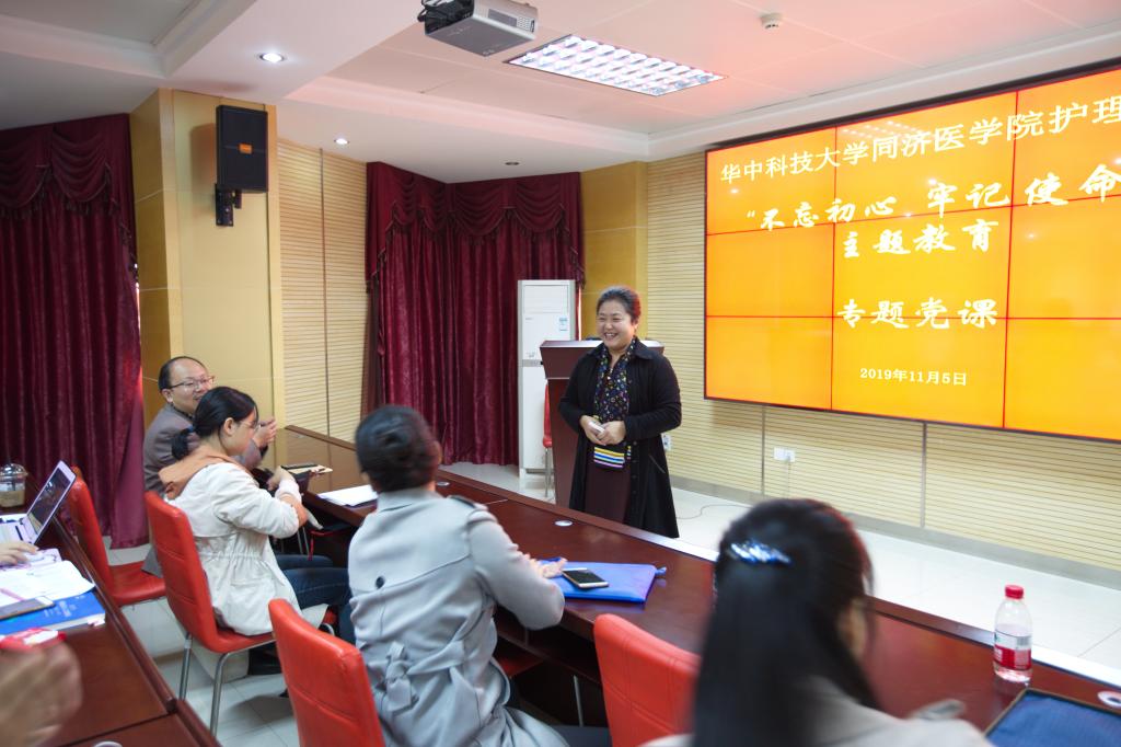 2019年11月5日上午十点,beat365在线唯一官网党总支书记徐晖在院八楼报告厅以“健康中国 护理的使命”为题,给全院师生党员上了一堂生动活泼的党课,学校“不忘初心 牢记使命”主题教育第六督导组组长离退休处徐冬英书记、同济医学院院办黄翠芳老师以及beat365在线唯一官网全体师生党员共同参加了此次党课。