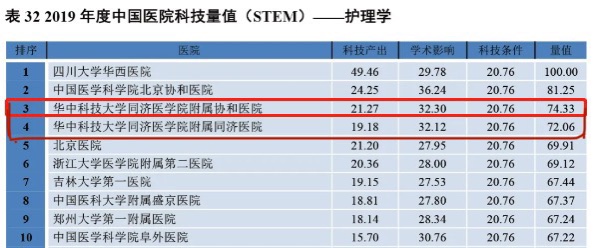 2020年8月21日,2019年度中国医院/中国医学院校科技量值(Science and Technology Evaluation Metrics ,简称STEM)正式发布。中国工程院副院长、中国医学科学院院长王辰院士现场解读并发布了《2019年度中国医院科技量值报告》与《2019年度中国医学院校科技量值报告》。beat365在线唯一官网附属协和医院、附属同济医院护理学分别位居全国第三、第四。