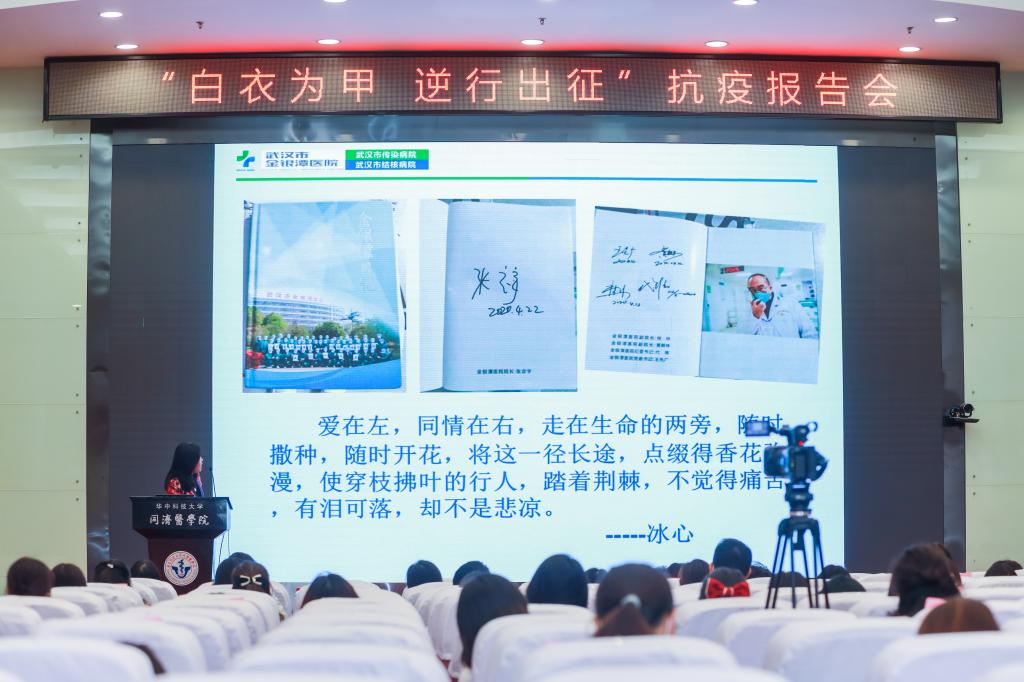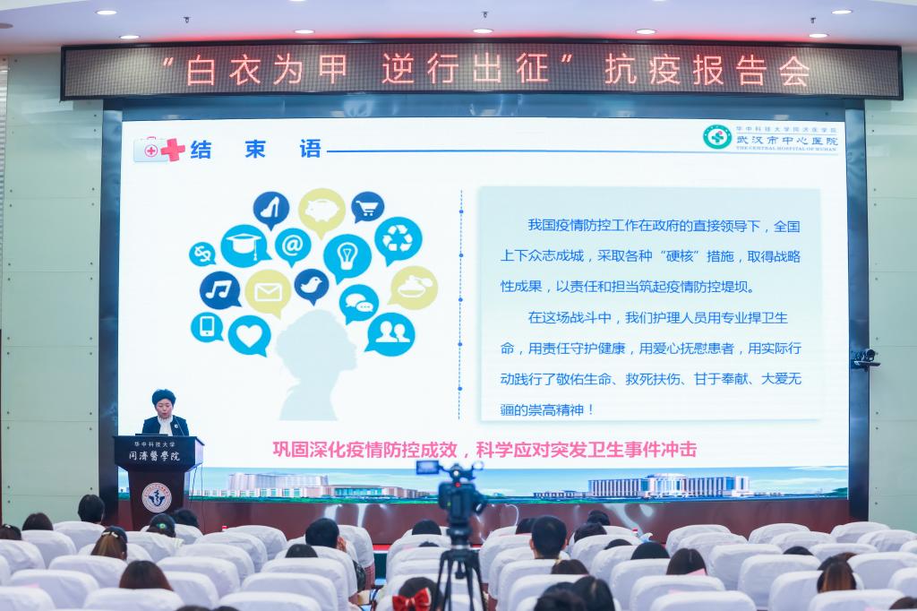 来自同济医学院附属协和医院、同济医院、武汉中心医院,以及武汉市金银潭医院这四所在2020年初战斗在抗击新冠肺炎疫情斗争中最前沿的护理同仁作抗疫报告,再次展现了“逆行而上”守护江城乃至全国人民生命安全的担当以及背后所蕴含的科学决策。2020级硕士研究生王佳庆刚刚离开临床工作、重回校园进行深造,他表示,被报告中充满人文关怀的抗疫故事所打动,感叹应以抗疫英雄前辈为榜样,作为新一代的护理人,要坚定信念,勤勉自强,勇担重任。