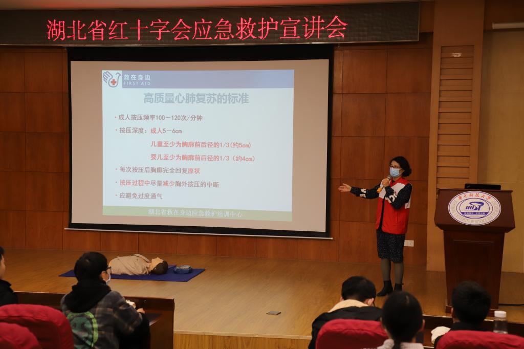 2021年11月19日至21日,湖北省救在身边应急救护培训中心走进beat365在线唯一官网,在湖北省红会师资与beat365在线唯一官网红会师资的协同配合下,通过理论结合实操的模式,对beat365在线唯一官网206名师生进行授课,圆满完成湖北省红十字会第47-51期救护员培训。