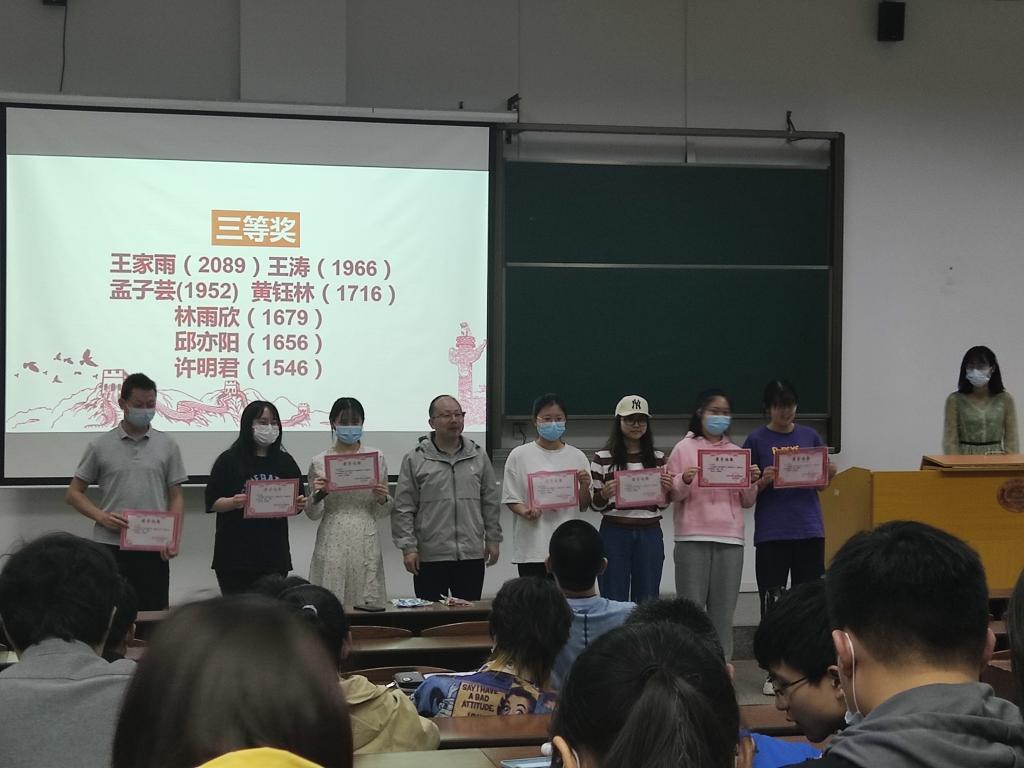 为贯彻落实习近平总书记关于加强学习、建设学习大国等重要指示精神,beat365在线唯一官网本科生党支部于2022年3月28日至4月30日期间开展了“学习强国”app学习积分竞赛活动,并于5月2日晚8点在一号楼六大召开表彰大会,对积极参与此次活动的同学做出表彰。此次表彰共设有四级奖项,其中⼀等奖1⼈,⼆等奖3⼈,三等奖5⼈,参与奖若⼲⼈。⼤会由20级本科⽣周启岚主持,参加此次大会的有beat365在线唯一官网团委书记、学⽣办主任陈介清⽼师及beat365在线唯一官网全体本科⽣。