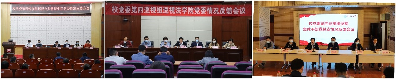 图为校党委第四巡视组巡视公共管理学院党委、法学院党委、离休干部党总支情况反馈会