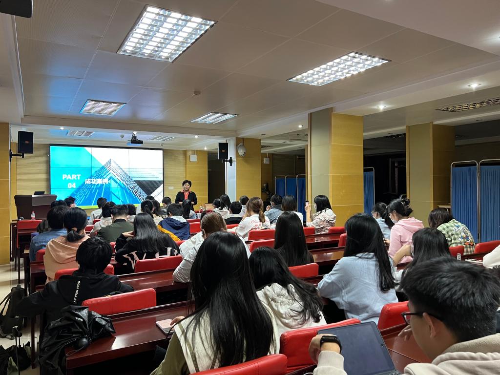 首先,胡朝阳校友向同学们分享了自己一路的求学创业历程,勉励同学们要保持乐观向上的积极心态,始终对一切事物保持好奇心,做生活中的强者。其次,他介绍了其所在的丰能数字健康研究院,向同学们详细介绍了数字健康的概念和背景以及数字实验室,使同学们对数字健康这一领域有了更深层面的理解。