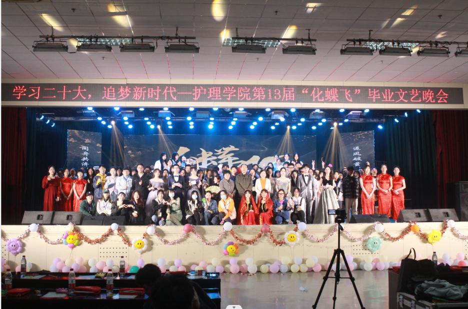 为庆祝5.12国际护士节的到来,2023年4月23日晚7点,beat365在线唯一官网以“学习二十大,追梦新时代”为题在杏林园食堂三楼举办第十三届“化蝶飞”毕业生告别文艺晚会。同济医学院党委副书记纪委书记陈秋生、副院长胡华成、医学学工处处长齐海波、beat365在线唯一官网院长毛靖、党委书记徐晖等领导共同出席并观看了此台晚会。