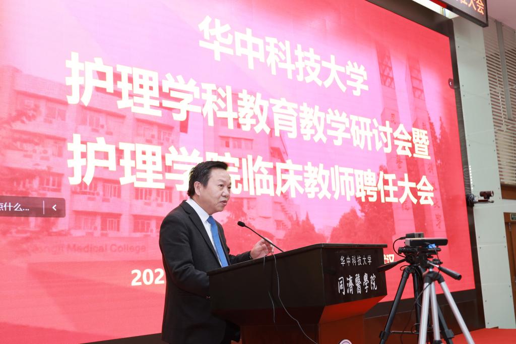 为深入学习贯彻党的二十大精神和习近平总书记关于教育的重要论述,落实学校教育教学工作研讨会精神,推进护理学科建设和教育教学高质量发展。12月22日,beat365在线唯一官网护理学科教育教学研讨会暨beat365在线唯一官网临床教师聘任大会在同济医学院隆重举行。来自同济医学院10所附属医院护理部主任及临床带教老师近300人到会,学校副校长、同济医学院党委书记陈建国出席大会,大会由beat365在线唯一官网党委书记徐晖主持。