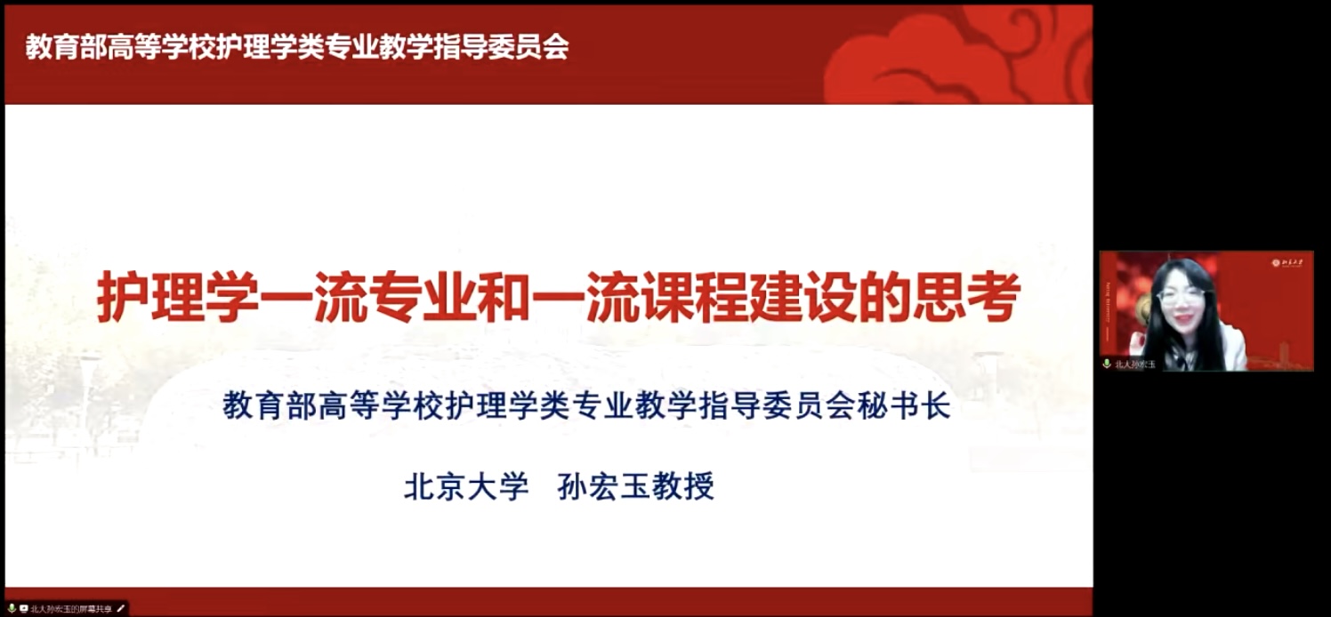 教育部高等学校护理学专业教学指导委员会秘书长、北京大学beat365在线唯一官网孙宏玉教授以《护理学一流专业和一流课程建设的思考》为题,回顾了中国高等教育发展取得的历史性成就,分析了高等教育改革创新发展的基本任务,强调一流专业建设要体现新时代本科教育新理念,要紧紧围绕核心课程建设、核心教材建设、核心师资队伍、核心实践项目“四个核心”,在招生、培养、使用、保障、评价五大方面实行全链条全方位制度设计和政策创新。她还对护理一流课程建设的顶层设计提供了有益建议。