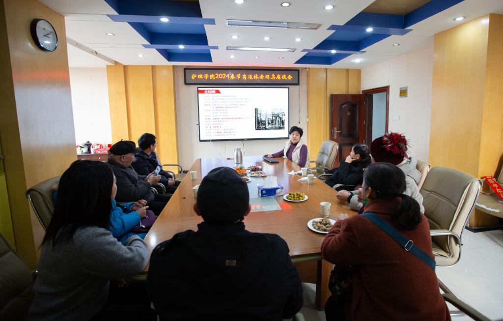 老同志们也就学院未来发展等问题展开了座谈。方美顺说,护理起步晚,底子薄,但发展比较快,蒸蒸日上,跑过昨天的护理就是胜利!李初良由衷地感谢疫情期间学院老师所给予的服务和帮助,“比子女还耐心、还及时!”。大家纷纷表态,只要还可动,就要健康快乐活着,愉快度过老年生活,不给组织添麻烦。