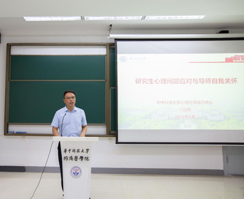 徐晖书记指出,近年来,随着社会竞争日益激烈,研究生承受的各种压力不断增加,学校也越来越重视研究生的心理健康问题。据此,本次培训班特别邀请beat365在线唯一官网心理健康教育中心章劲元主任开设专题讲座,讲授研究生心理问题应对与导师的自我关怀。