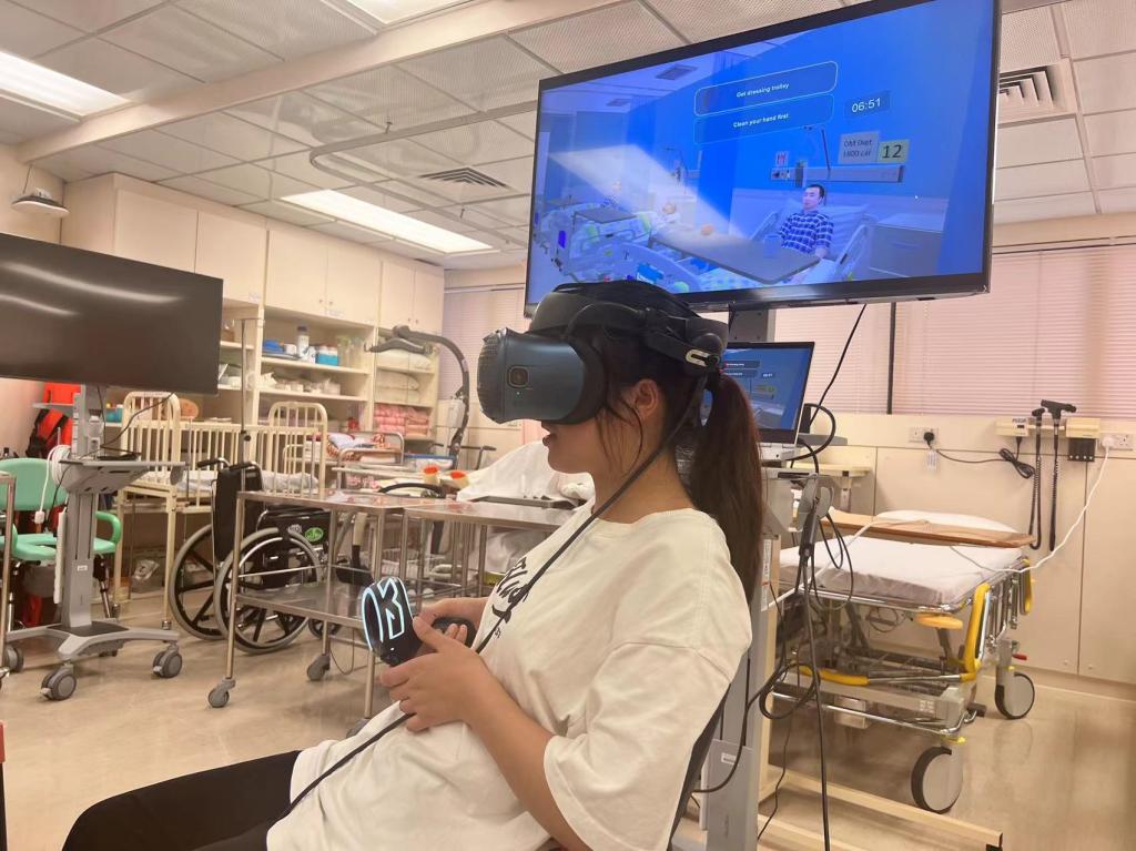 参观环节,香港理工大学向学生们展示了校园设计展、心理健康工作坊、智能家居、智能机器人、全息投影技术等,让学生近距离体验心理健康互动教学和虚拟医院。学生同时参观了梨木树护养院、尖东救护站、养和医院等多家香港医疗机构,了解香港独具特色的医疗救护模式和养老体系,学习先进医疗设备和多种急救工具的使用。