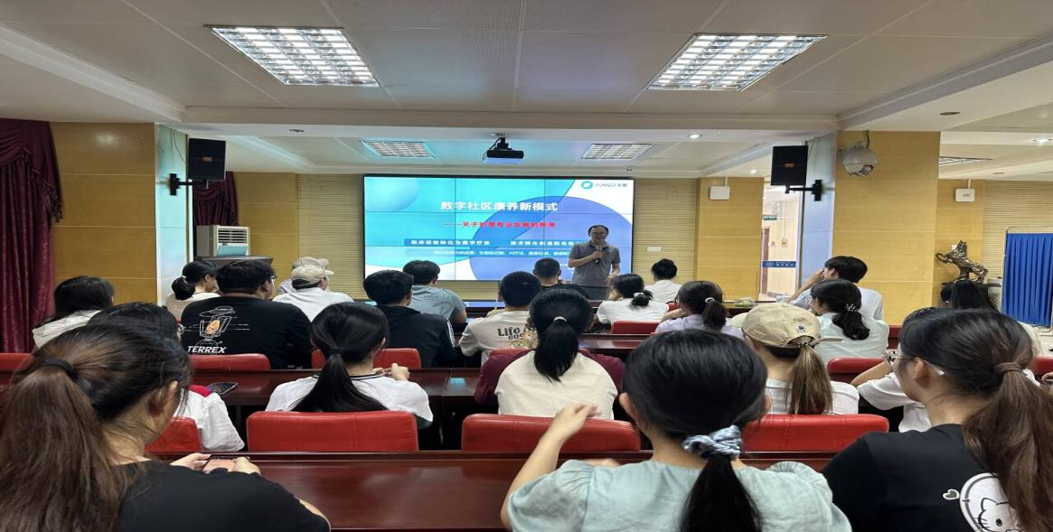 讲座中,胡朝阳围绕“数字社区素养新模式”这一主题,首先展示了中国进入新时代的一些改变,接着过渡到数字健康,深入浅出地讲解了如何实现数字健康以及数字健康中遇到的的一些问题,并使用恰当的比喻使原本枯燥的理论变得生动有趣,极大地激发了听众的兴趣。同时,胡朝阳分享了自己的一些亲身经历和心得体会,他提到自己在实习后发现对护理工作不感兴趣,便投身商业,但也遇到了一些困难,刚开始资金不足,后面又要观察市场需要等,凭着一股劲做到了现在的成就。他指出护理专业就业方向广,不一定就是进入医院做护士,可以根据自己的兴趣来选择职业方向如科研、商业、宠物护理师等,并鼓励大家勇于探索、敢于创新,还祝愿每一个人成为科学家,让每一份研究发挥价值。