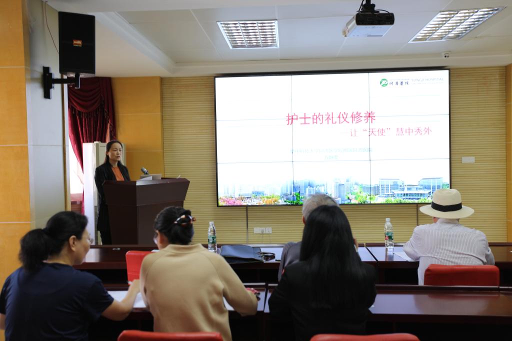 万静雯老师试讲《护士人文修养》中的“护士的礼仪修养”部分,主要内容包括礼仪的概述、社交礼仪、求职礼仪以及护士的职业礼仪。万静雯表示,学好护士的礼仪修养,帮助“天使”慧中秀外。她引经据典讲解了护理工作中的各项礼仪,希望通过课程可以使同学们将护理礼仪规范内化于心、外化于行。