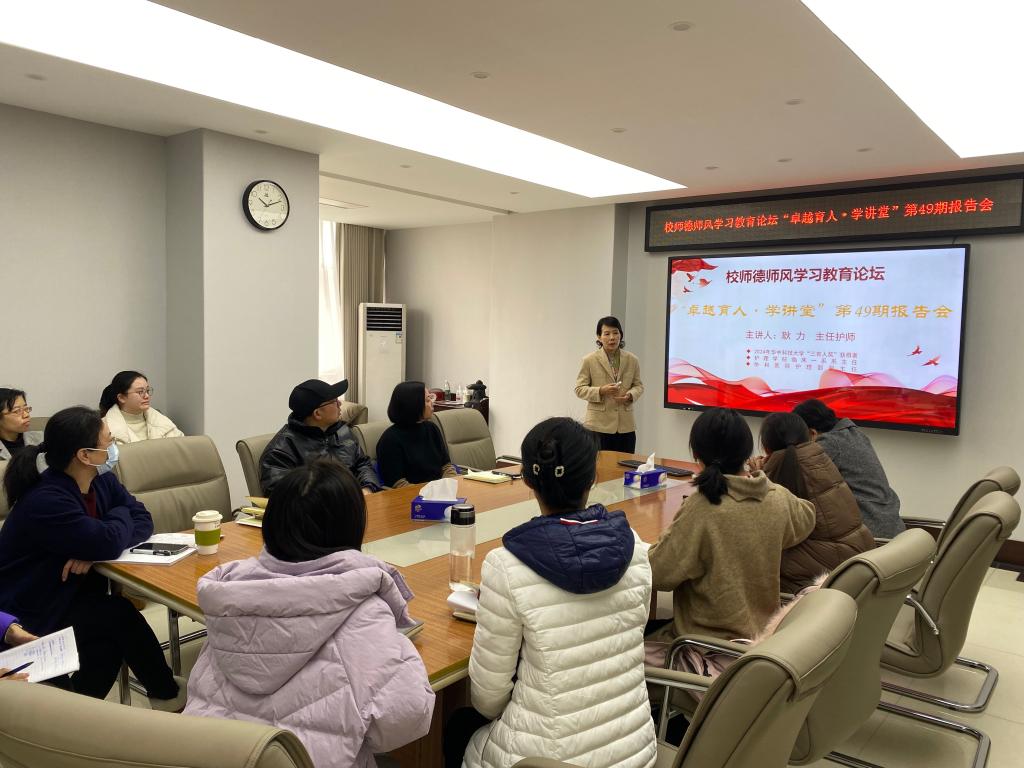 12月27日,校师德师风学习教育论坛“卓越育人·学讲堂”第49期报告会在beat365在线唯一官网9楼会议室举行。beat365在线唯一官网临床一系主任、附属协和医院护理部副主任、2024年beat365在线唯一官网“三育人奖”获得者耿力受邀作“新形势下的教与学”专题报告。beat365在线唯一官网党委书记徐晖主持会议,beat365在线唯一官网全体教职工参加报告会。