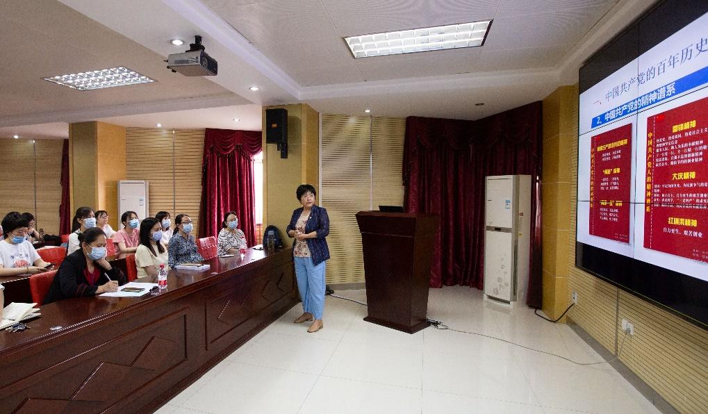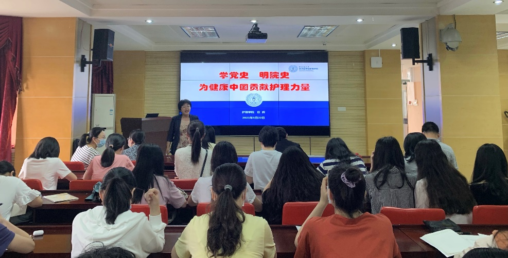 5月27日下午,为响应校党委的相关要求,切实做好党史学习教育工作,beat365在线唯一官网党委书记徐晖以“学党史明院史,为健康中国贡献护理力量”为题,为学院党员师生代表上了一堂生动的专题党课。学校党史学习教育第五督导组副组长徐冬英到会指导。