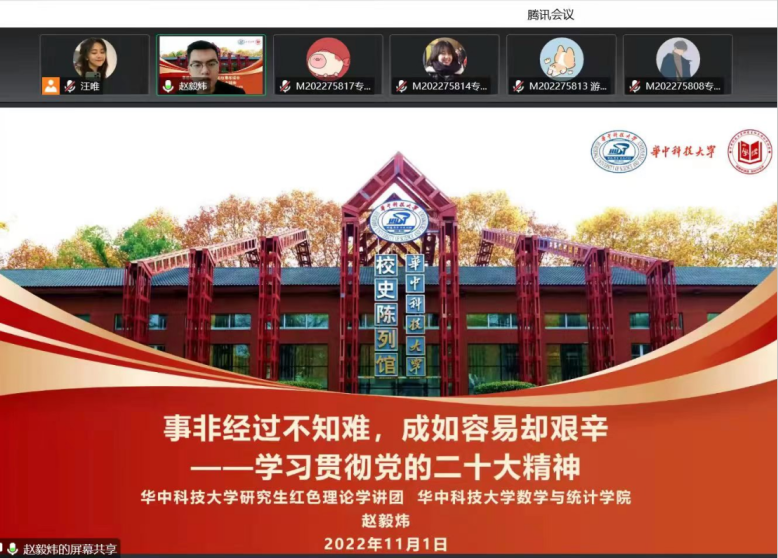 11月7日,beat365在线唯一官网2021级研究生党支部以线上形式开展主题为“学习贯彻党的二十大精神”11月主题党日活动。活动由研究生党支部书记李汶窈主持,黄垒主讲,围绕“了解党的二十大”、“聚焦二十大报告”、“争做新时代好青年”展开,并以创意手帐的方式介绍了“二十大主题”、“十年来的三件大事”、“党的中心任务”等内容。