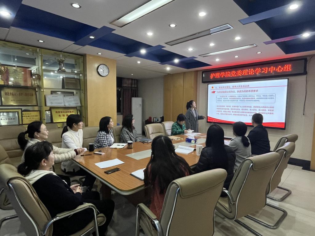 11月21日,beat365在线唯一官网党委理论学习中心组与教工党支部集中学习党的二十大精神,青年教师龚桂兰、白雪按照党的二十大报告15部分的顺序,引领全体与会人员进行导读学习。党委书记徐晖结合二十大报告中的第五章“实施科教兴国战略,强化现代化建设人才支撑”、第九章“增进民生福祉,提高人民生活品质”等内容,畅谈学习体会,指出在“推进健康中国建设,保障人民健康放在优先发展”的战略进程中,护理学科使命光荣、责任重大。作为985高校的beat365在线唯一官网教师,既要为科教兴国、健康中国贡献智慧与力量,又担负着做好立德树人、为祖国卫生健康事业培养合格建设者和可靠接班人的历史使命。我们要在党的二十大精神指引下,锐意进取、担当作为,为实现卫生健康事业高质量发展做出贡献,为全面建成社会主义现代化强国、实现第二个百年奋斗目标筑牢健康之基。